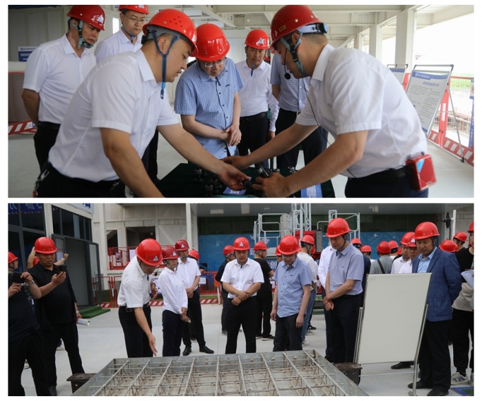 觀摩現(xiàn)場以視頻、展板、實(shí)體、樣板等多方位形式,對(duì)綠色建造、智能建造、關(guān)鍵施工技術(shù)共計(jì)10余項(xiàng)創(chuàng)新技術(shù)進(jìn)行集中展示,全面展示了裝配式鋼結(jié)構(gòu)體系、綠色建筑材料的應(yīng)用、文明施工管理現(xiàn)代化模式。